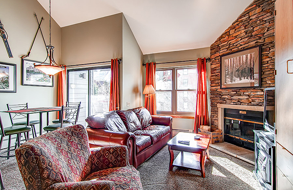 Summit Mountain Rentals offers four condos at the River Mountain Lodge - a studio loft, two one-bedroom units and a two-bedroom unit that sleeps up to eight - all with private balconies, gas or wood burning fireplaces and comfortable furnishings.